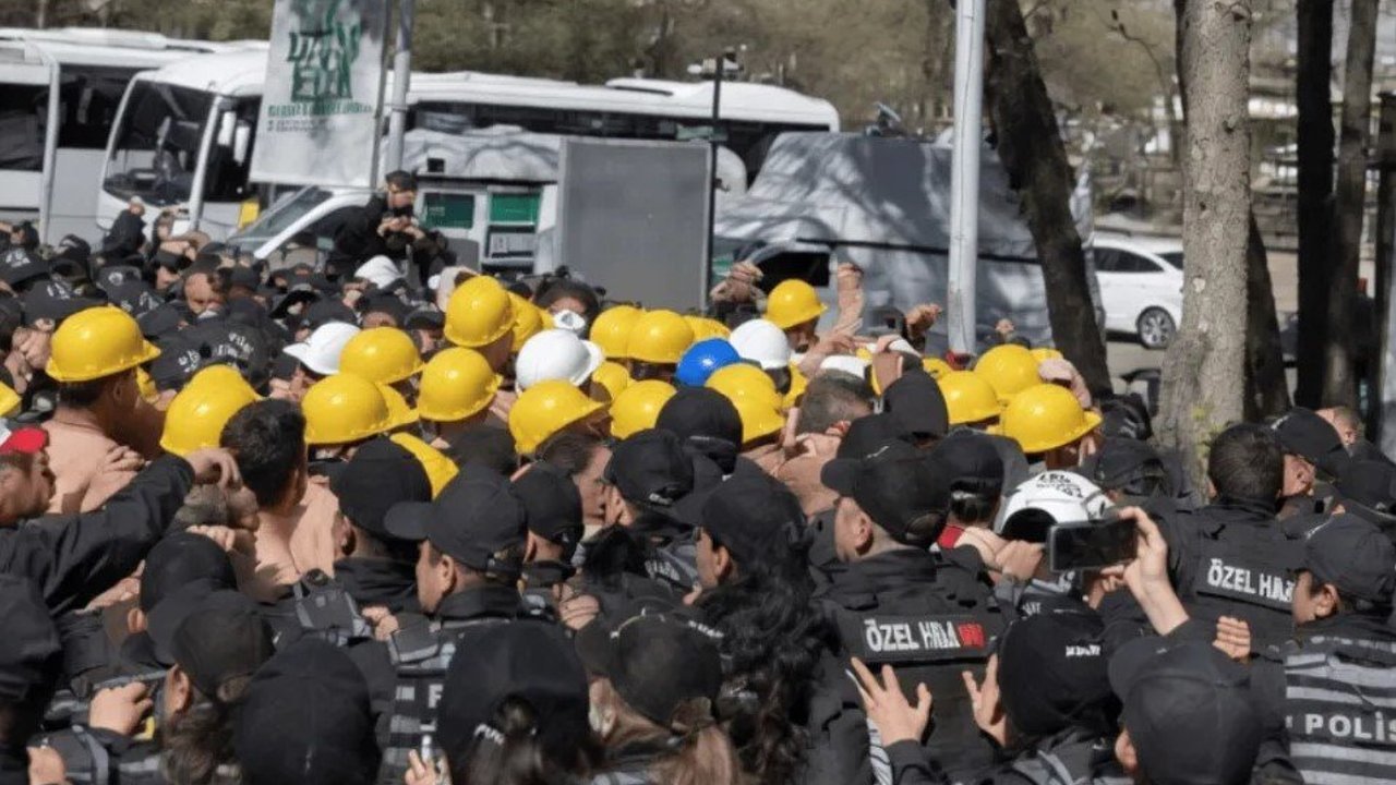 Aylardır maaşlarını alamayan ve açlık grevine başlayan işçiler, Kurtuluş Parkı’ndan Enerji ve Tabii Kaynaklar Bakanlığı’na yürümek istedi. Ancak polis, kurduğu barikatla yürüyüşe izin vermedi.